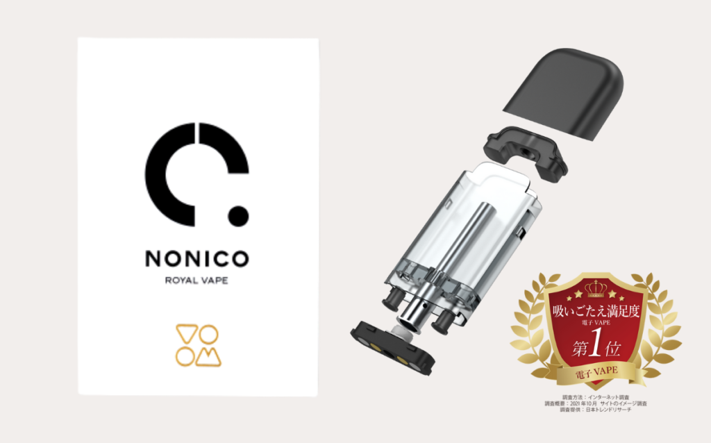 日本国内だけでなく海外の最新ランキングでも注目を集めているのが、NONICOです。おしゃれで洗練されたデザインでありながら、吸いごたえは抜群。独自開発のミクロンセラミックコイルを採用し、ダイナミックな吸いごたえを実現しています。